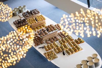 Over de catering tijdens jouw beurs denken we goed na. Hapjes voor de standhouders die ze eenvoudig tussendoor kunnen eten, eventueel achter de beursstands. En voor je gasten zetten we een cateringplein op in het hart van de beursvloer. Zo blijven ze ook tijdens de lunch in contact met de standhouders. En onze artiesten in de keuken bereiden prachtige hapjes en drankjes helemaal afgestemd op jouw beurs.