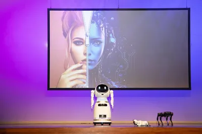 Na de ontvangst nam iedereen plaats in podium één, waar een robot de dag opende met een welkomstwoord. “Vervolgens interviewde ik de robot”, vertelt Maarten, “Dit was nu nog helemaal gescript. Maar ik ben ervan overtuigd dat het met toepassingen als ChatGPT binnenkort mogelijk is om een spontaan interview af te nemen. En dan kun je hele leuke dingen doen.”