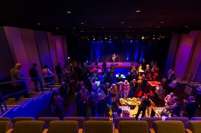 Podium twee is een multifunctionele zaal die erg geschikt is voor een receptie opstelling. Met statafels toveren wij de vloer om in een smakelijke walking diner, gezellige borrel of swingend feest. De receptie opstelling wordt na het inschuiven van de tribune op de vlakke vloer geplaatst.