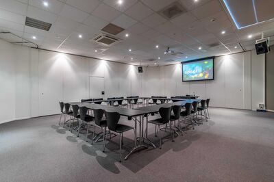 In podium vijf is de klassieke theateropstelling de meest gekozen opstelling. Onze theateropstelling biedt elke deelnemer een perfect zicht op de presentatie of spreker. De opstelling wordt in de lengte opgebouwd richting het projectiescherm. Het is ook mogelijk om de doorgang naar podium zes te openen zodat het één grote ruimte wordt.