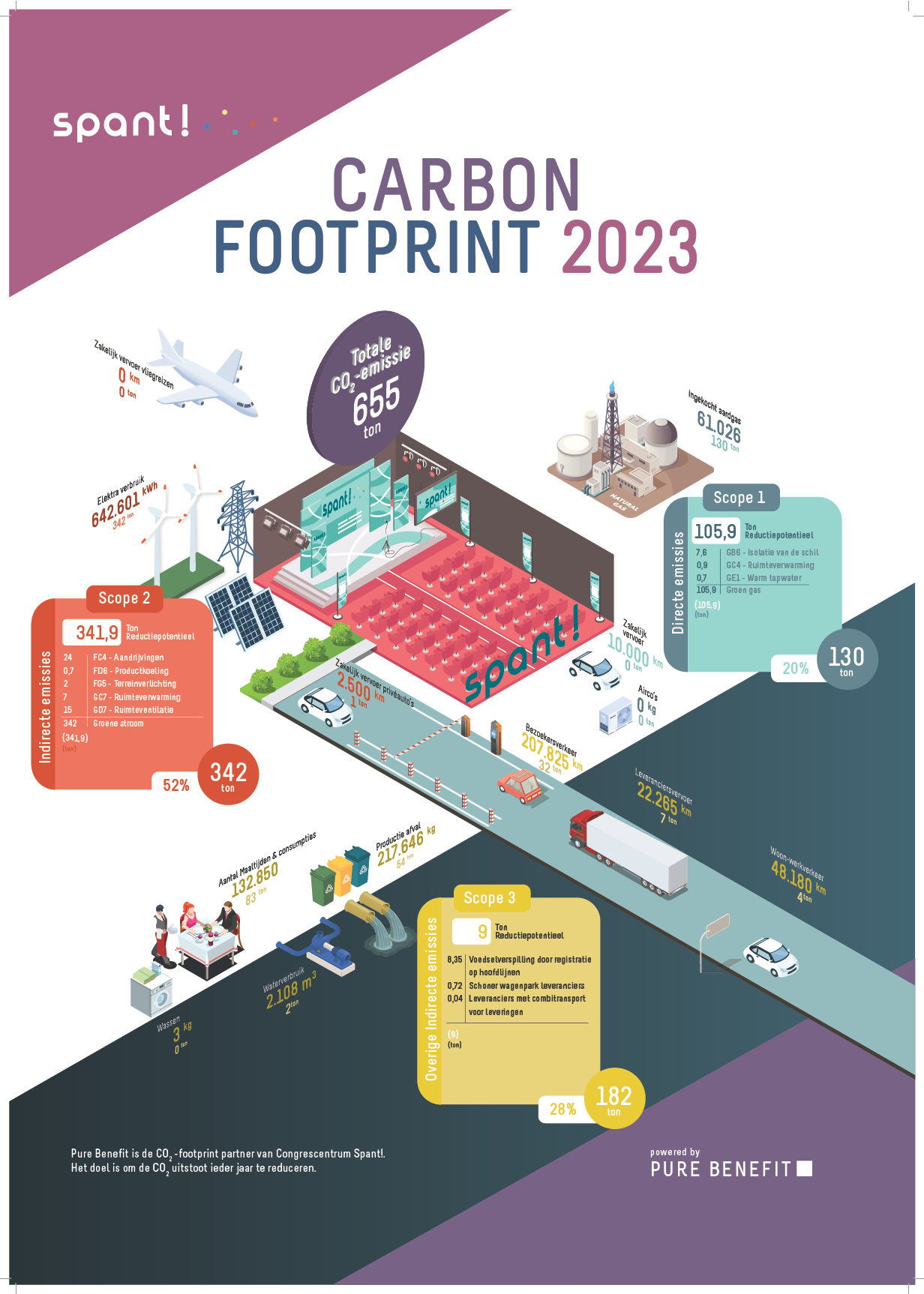 Bij Spant streven we er al jarenlang naar om onze ecologische voetafdruk te verkleinen. Als theater en congreslocatie ontvangen we dagelijks veel gasten en organiseren we uiteenlopende evenementen, dat vraagt om energie, logistiek en faciliteiten. Dat betekent automatisch ook: CO₂-uitstoot.
